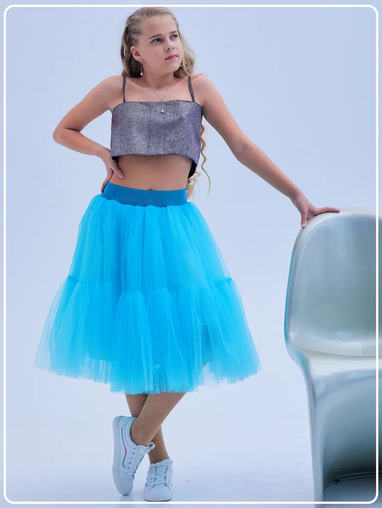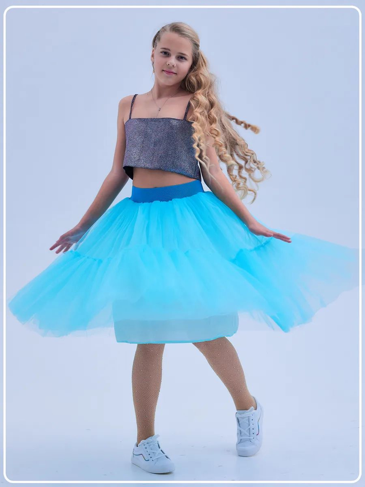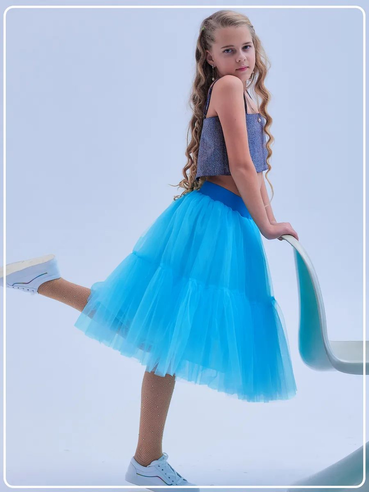 Купить Нарядная юбка для девочки из фатина Мальвина голубая в интернет-магазине dallina.ru с доставкой. Нарядная юбка для девочки из фатина Мальвина голубая, артикул : читать описание, характеристики, фото