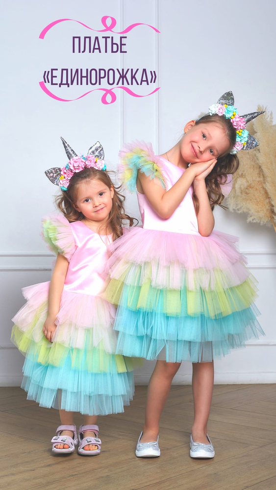 Яркое нарядное платье "Единорожка" - мечта любой девочки! День рождения, выпускной в садике, Новый год, 1 сентября, утренники и фотосессии - абсолютно на любом празднике ваша принцесса в этом платье будет самой прекрасной.