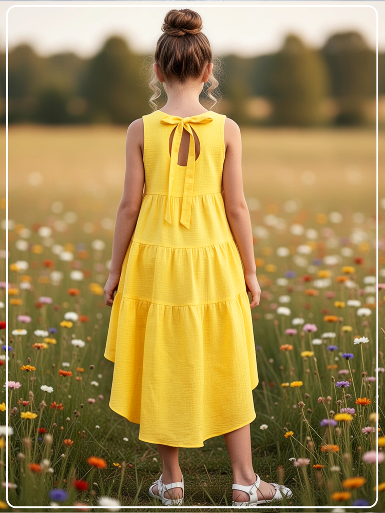 Ярусное платье из муслина высочайшего качества: состав ткани - 100% американский длинноволокнистый хлопок, который и придает необыкновенную мягкость изделиям.. Подходит для детей 3, 4, 5, 6, 7, 8, 9, 10, 11, 12, 13, 14, 15, 16, 17 лет и даже для женщин. Натуральная и при этом очень мягкая ткань невероятно приятна к телу. Муслиновая детская и женская одежда идеальна для лета. Она имеет высокую воздухопроницаемость, благодаря чему кожа вашего ребенка будет отлично дышать.