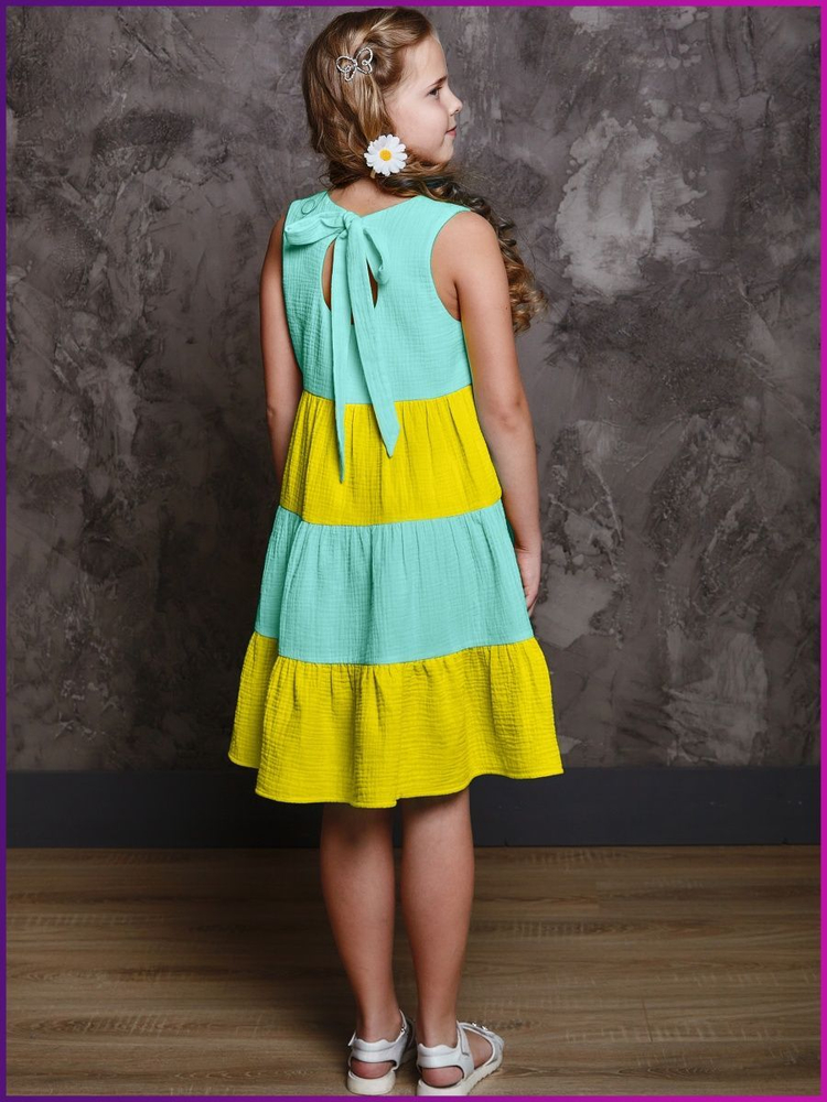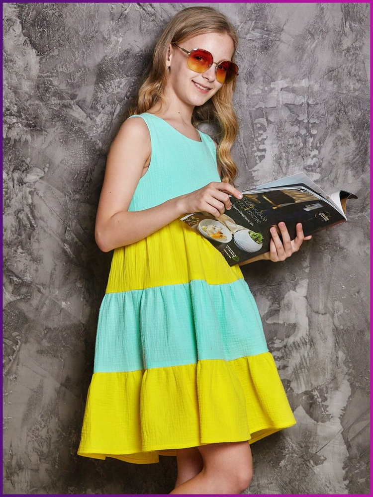 Ярусное платье из муслина высочайшего качества: состав ткани - 100% американский длинноволокнистый хлопок, который и придает необыкновенную мягкость изделиям.. Подходит для детей 3, 4, 5, 6, 7, 8, 9, 10, 11, 12, 13, 14, 15, 16, 17 лет и даже для женщин. Натуральная и при этом очень мягкая ткань невероятно приятна к телу. Муслиновая детская и женская одежда идеальна для лета. Она имеет высокую воздухопроницаемость, благодаря чему кожа вашего ребенка будет отлично дышать.