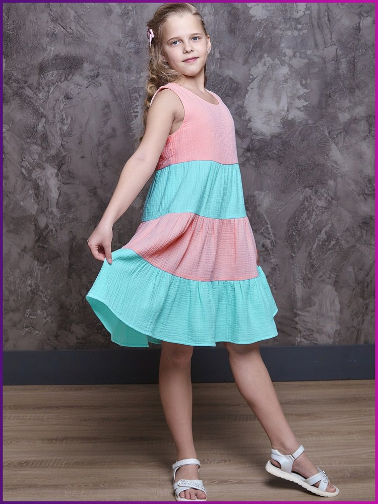 Ярусное платье из муслина высочайшего качества: состав ткани - 100% американский длинноволокнистый хлопок, который и придает необыкновенную мягкость изделиям.. Подходит для детей 3, 4, 5, 6, 7, 8, 9, 10, 11, 12, 13, 14, 15, 16, 17 лет и даже для женщин. Натуральная и при этом очень мягкая ткань невероятно приятна к телу. Муслиновая детская и женская одежда идеальна для лета. Она имеет высокую воздухопроницаемость, благодаря чему кожа вашего ребенка будет отлично дышать.