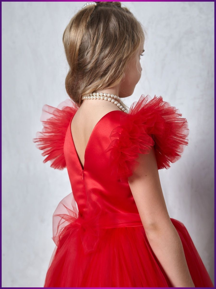 Нарядное платье для девочки с пышной юбкой-шлейфом из фатина украсит вашу принцессу на любом празднике, его также можно надеть для прогулки с подружками или фотосессии. Платье детское идеально подойдёт на 8 марта, День рождения, выпускной в детском саду, фотосессию, свадьбу родственников, Новый год.