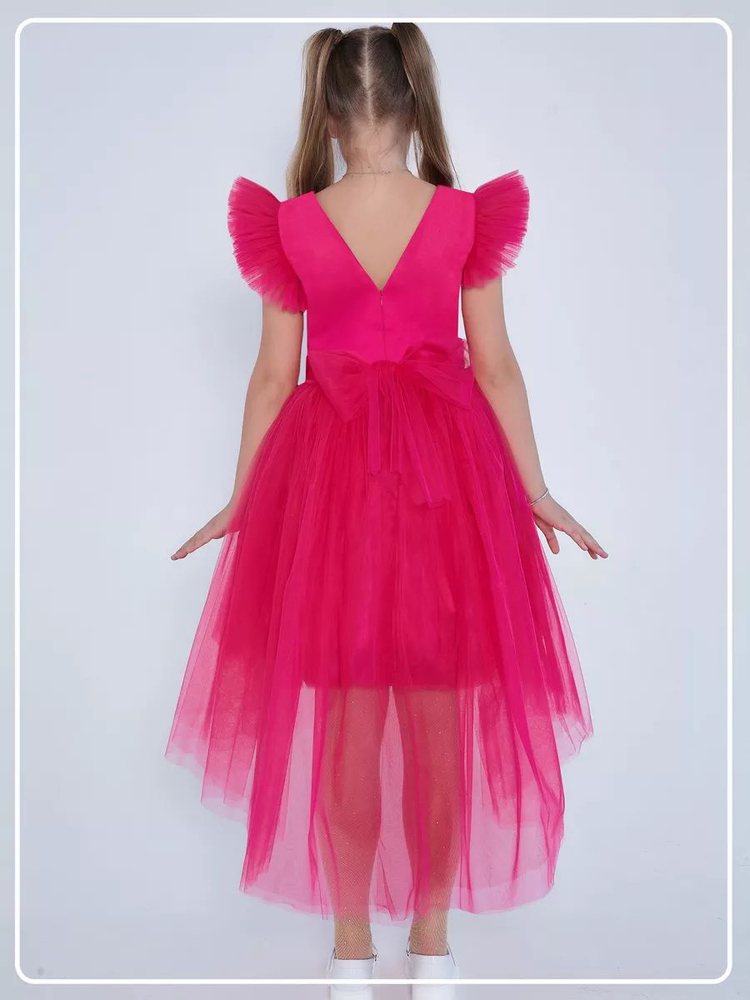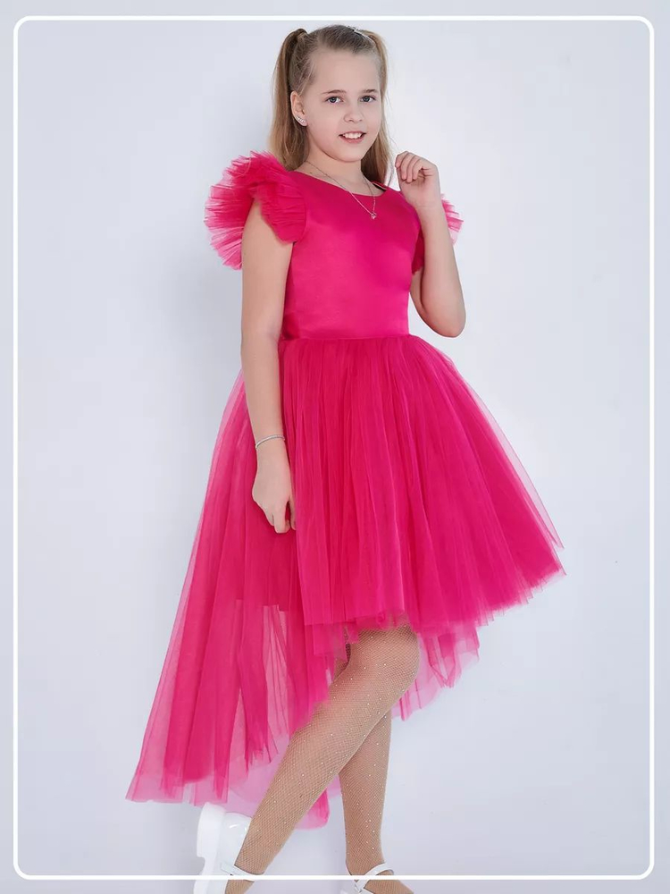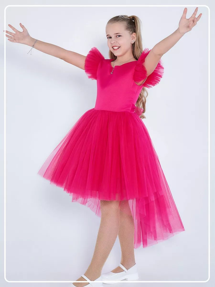 Нарядное платье для девочки с пышной юбкой-шлейфом из фатина украсит вашу принцессу на любом празднике, его также можно надеть для прогулки с подружками или фотосессии. Платье детское идеально подойдёт на 8 марта, День рождения, выпускной в детском сад...