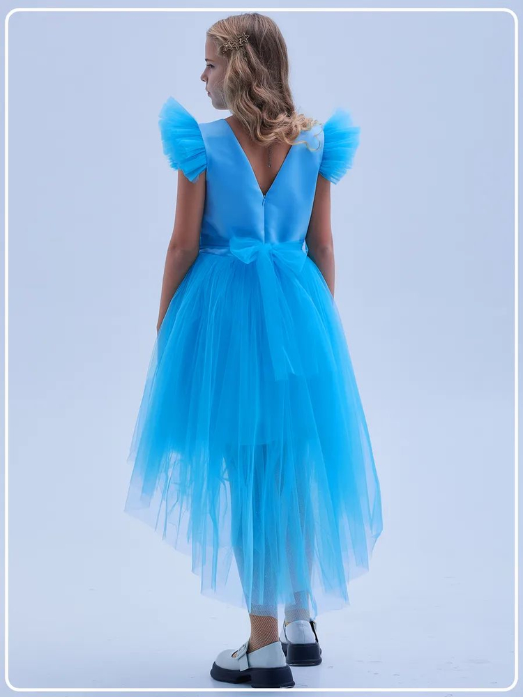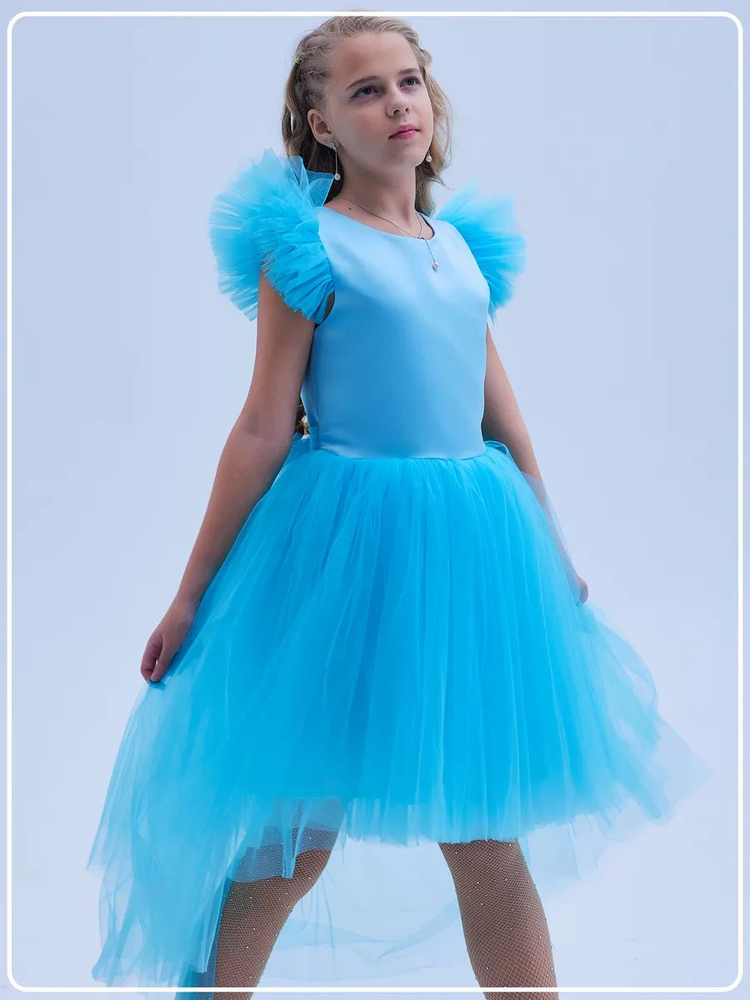 Нарядное платье для девочки с пышной юбкой-шлейфом из фатина украсит вашу принцессу на любом празднике, его также можно надеть для прогулки с подружками или фотосессии. Платье детское идеально подойдёт на 8 марта, День рождения, выпускной в детском сад...