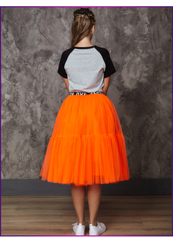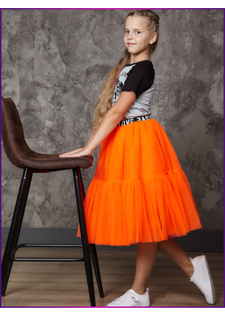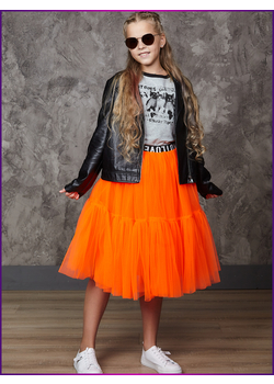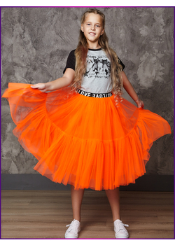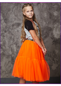 Нарядная юбка для девочки из фатина Мальвина оранжевая