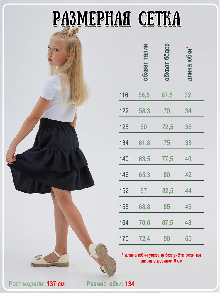 Забудьте о бесконечных поисках идеального наряда для важных событий на лето — с нашей ярусной юбкой школьной с воланами для девочки вы всегда будете готовы к новым достижениям и торжественным моментам. Выберите лучшее для своей дочери и сделайте её школьные годы незабываемыми!