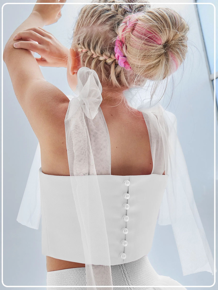 Топ праздничный от DALLINA Kids – идеальный выбор для создания стильного образа на любой торжественный случай. Модель с завязками на плечах и укороченным кроем подчеркнет юную грацию, а гладкая фактура материала обеспечит комфорт в течение всего вечера. Топ выполнен из приятной к телу смеси полиэстера и хлопка, что гарантирует его мягкость и воздухопроницаемость. Благодаря универсальному белому цвету, топ легко комбинируется с различными юбками и брюками, позволяя создавать разнообразные образы.
